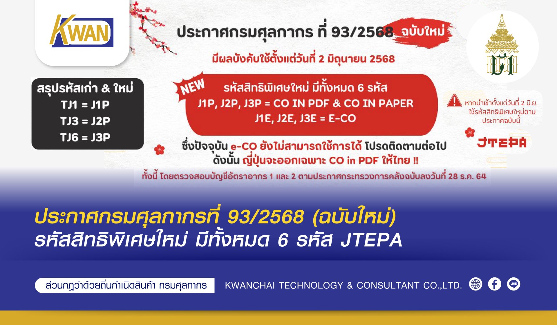 ประกาศกรมศุลกากร ที่ 93/2568 (ฉบับใหม่) มีผลบังคับใช้ตั้งเเต่วันที่ 2 มิถุนายน 2468