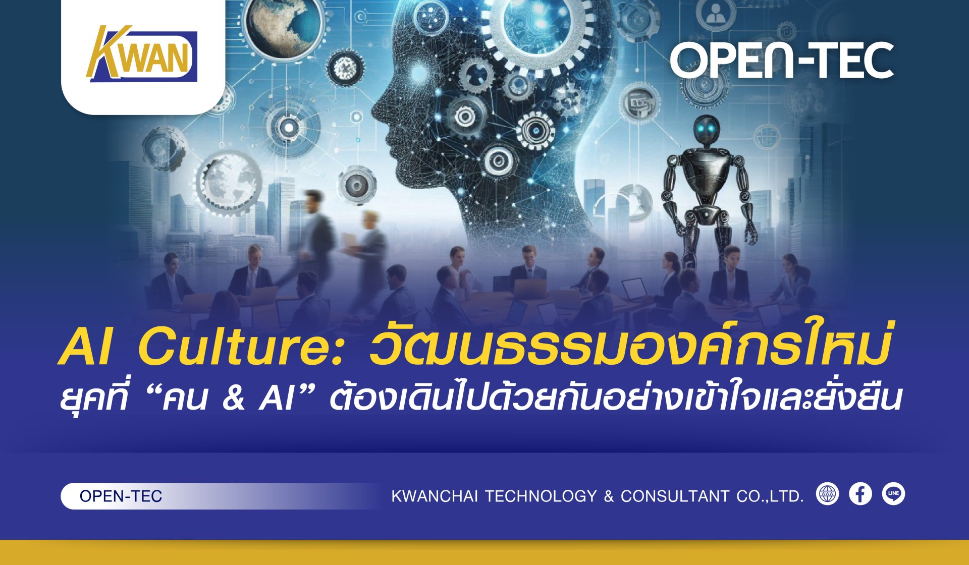 ในยุคที่เทคโนโลยีเปลี่ยนแปลงไปอย่างรวดเร็ว องค์กรต่างๆ จำเป็นต้องปรับตัวให้สอดคล้องกับความท้าทายและโอกาสที่เกิดขึ้นอย่างต่อเนื่อง หนึ่งในปัจจัยการเปลี่ยนแปลงที่สำคัญคือปัญญาประดิษฐ์ (AI) ซึ่งเข้ามามีบทบาทในการขับเคลื่อนหลากหลายอุตสาหกรรม ไม่ว่าจะเป็นอุตสาหกรรมการผลิต การบริการ การเงิน การแพทย์ รวมไปถึงภาครัฐและภาคเอกชน อย่างไรก็ตาม การนำ AI มาใช้ให้เกิดประโยชน์สูงสุดไม่ได้ขึ้นอยู่กับเทคโนโลยีเพียงอย่างเดียว หากจำเป็นต้องมีวัฒนธรรมองค์กรที่เข้าใจและพร้อมทำงานร่วมกับ AI อย่างเป็นระบบและยั่งยืน วันนี้ OPEN-TEC (Tech Knowledge Sharing Platform) ภายใต้การดูแลของ TCC TECHNOLOGY GROUP จะพาทุกท่านไปสำรวจ AI Culture ที่จะกลายเป็นรากฐานสำคัญขององค์กรยุคใหม่