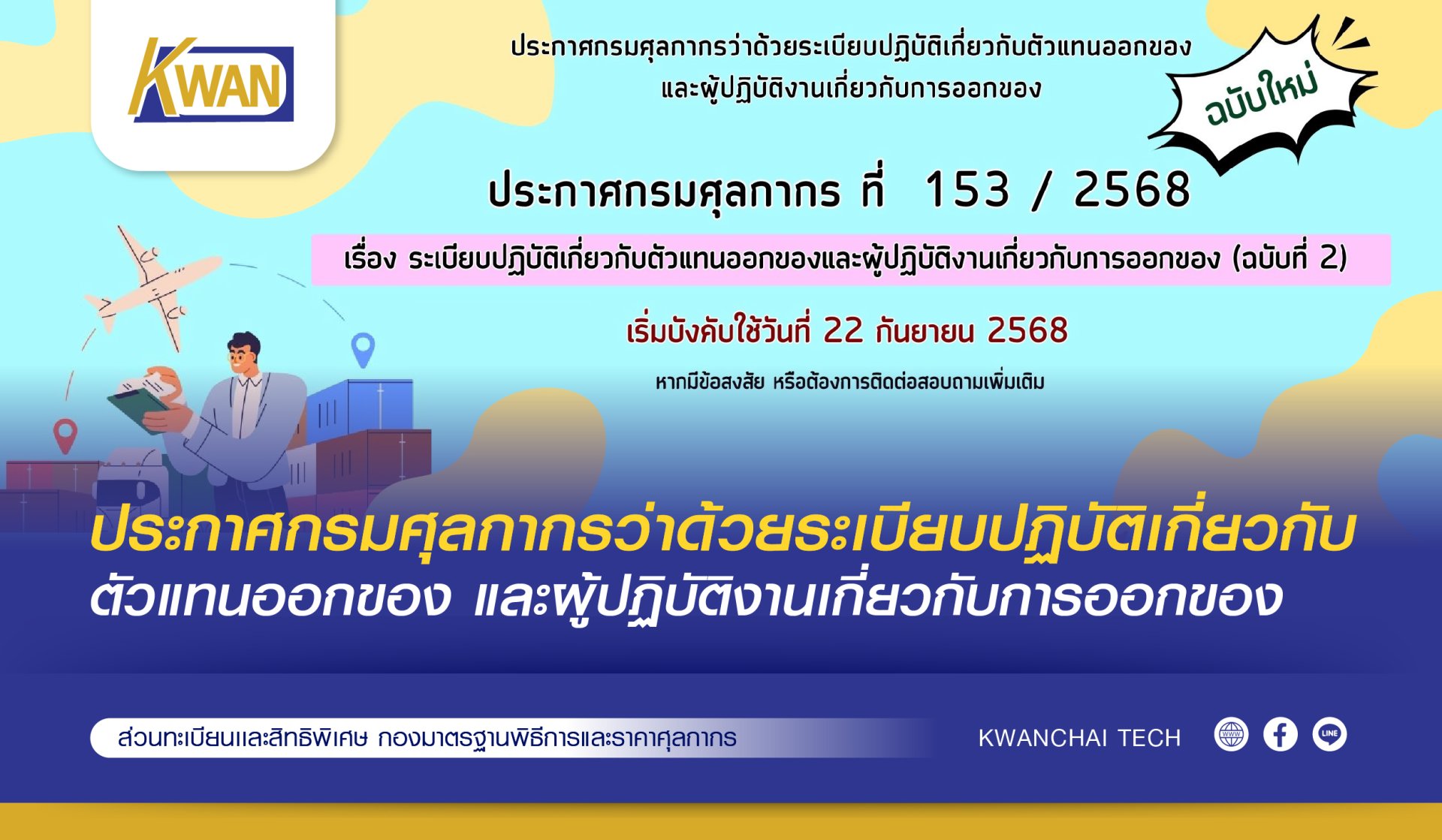 ประกาศกรมศุลกากร ที่ 153 / 2568 (ฉบับใหม่)