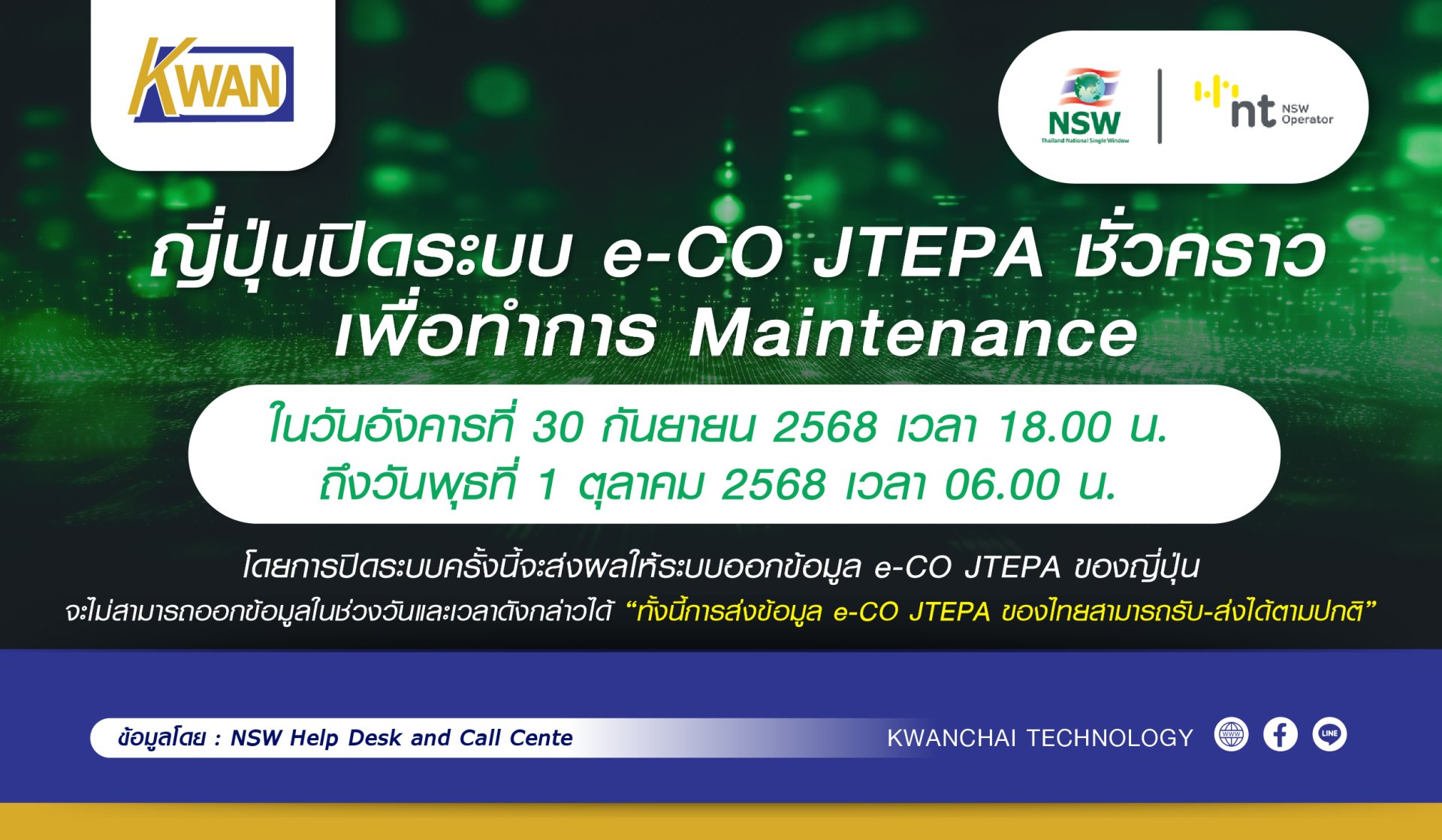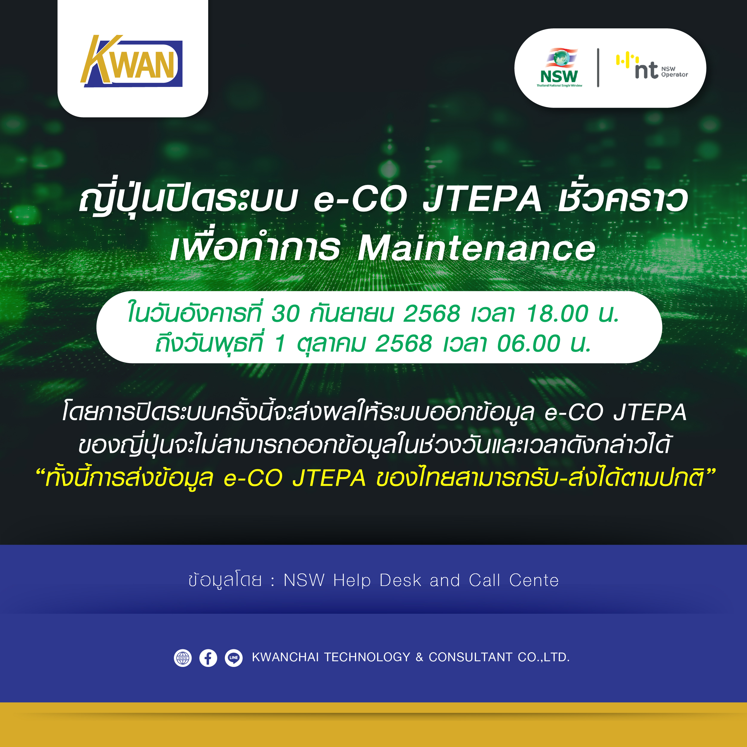 ประกาศแจ้งปิดระบบ! ญี่ปุ่นปิดระบบ e-CO JTEPA ชั่วคราว เพื่อทำการ Maintenance