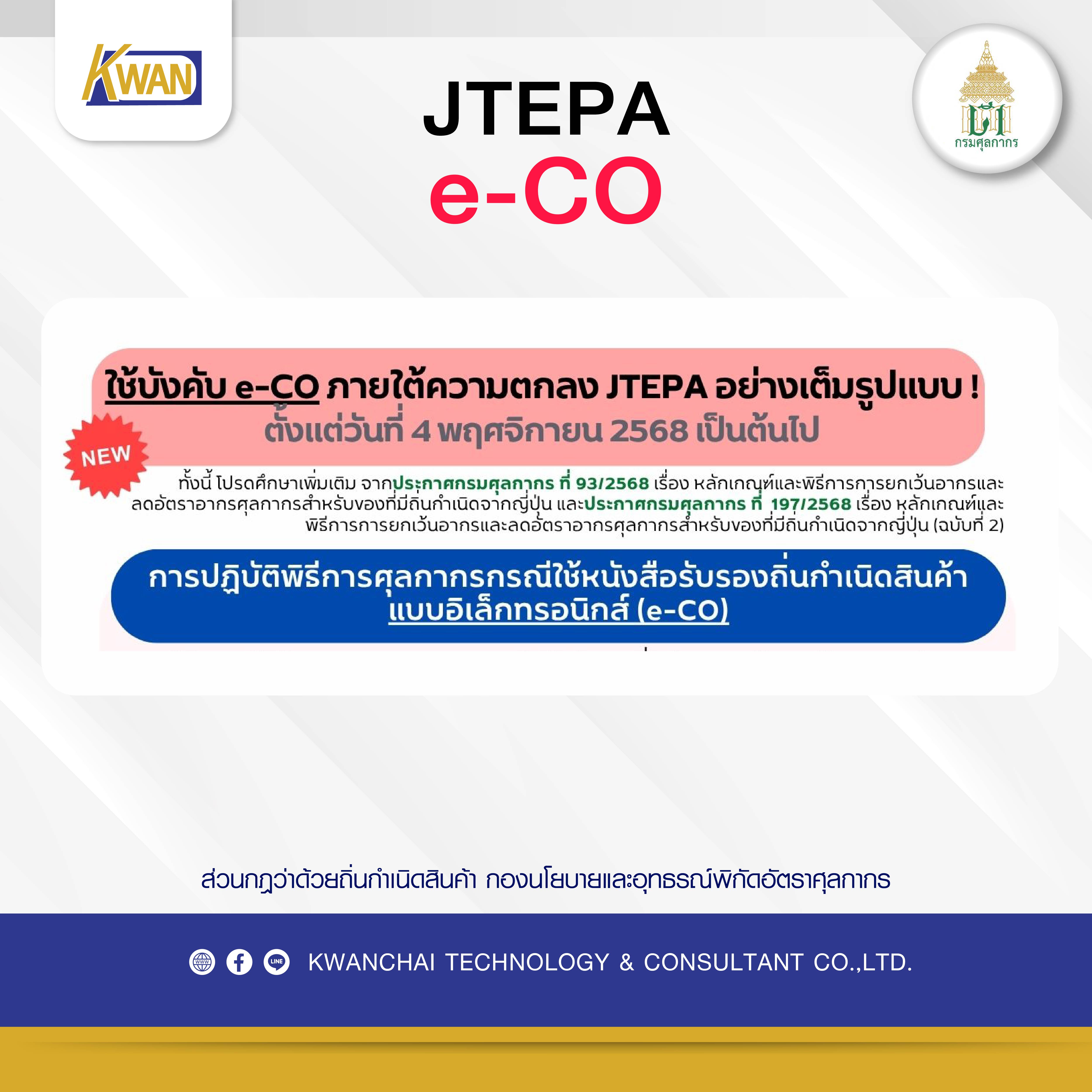 ใช้บังคับ e-CO ภายใต้ความตกลง JTEPA อย่างเต็มรูปแบบ