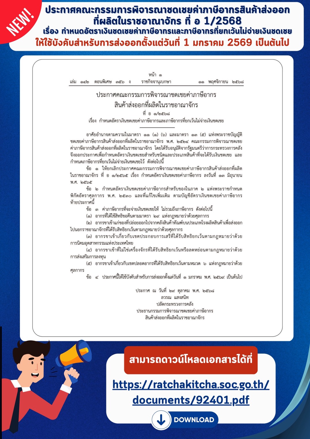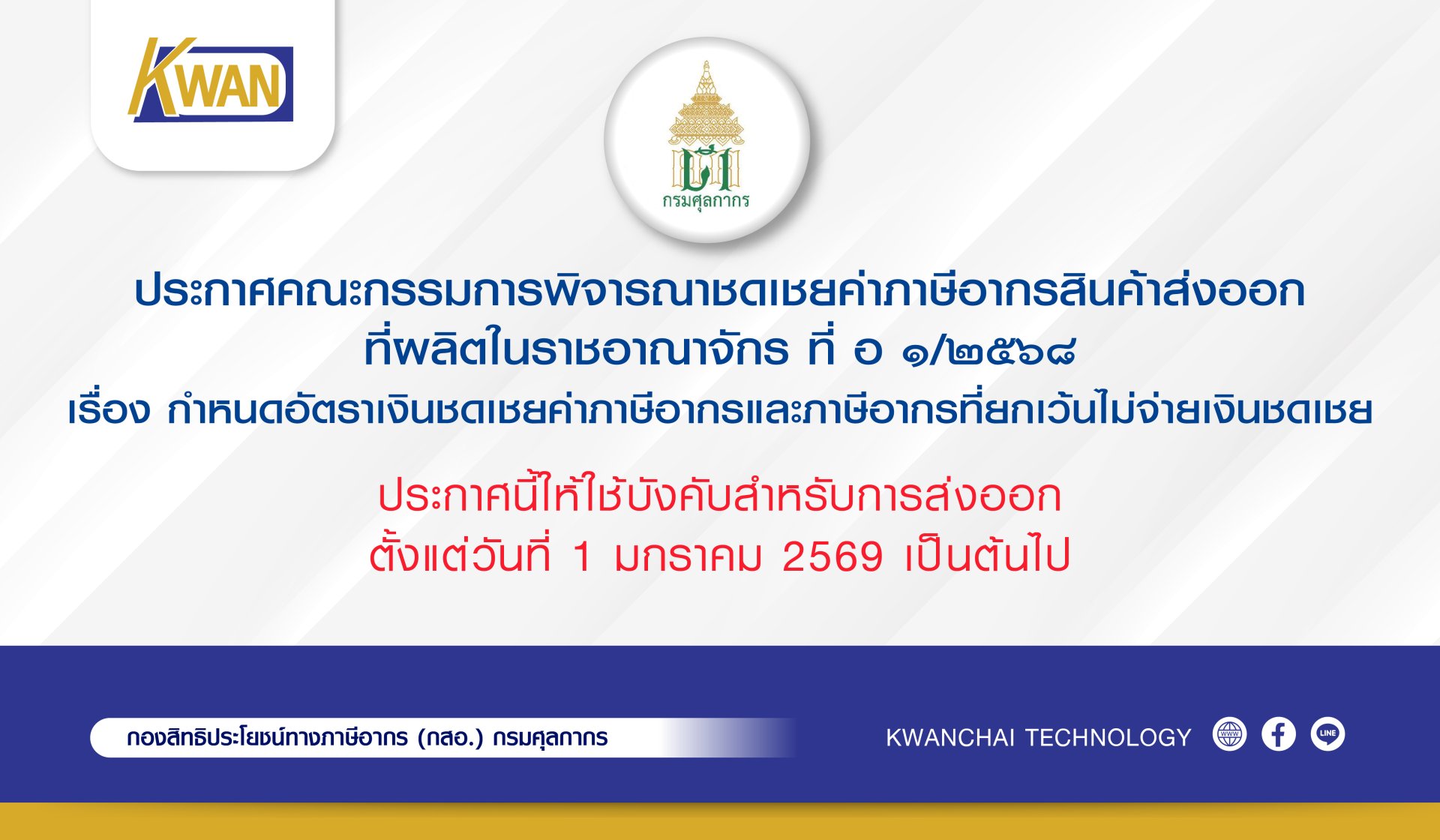 ประกาศนี้ให้ใช้บังคับสำหรับการส่งออก ตั้งแต่วันที่ 1 มกราคม 2569 เป็นต้นไป