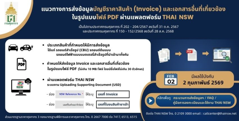 แนวทางการส่งข้อมูลบัญชีราคาสินค้า (Invoice) และเอกสารอื่นที่เกี่ยวข้องในรูปแบบไฟล์ PDF ผ่านแพลตฟอร์ม THAI NSW