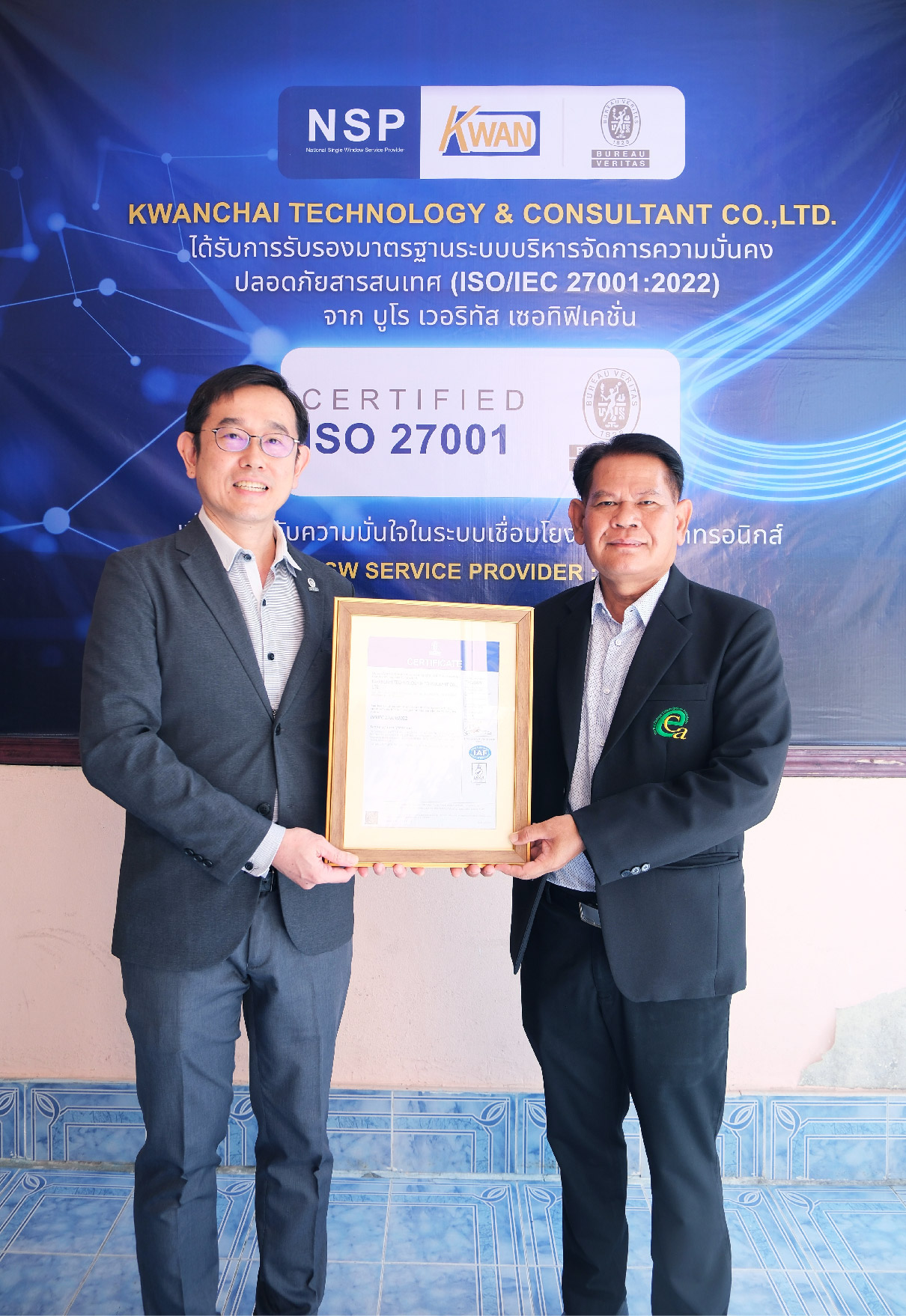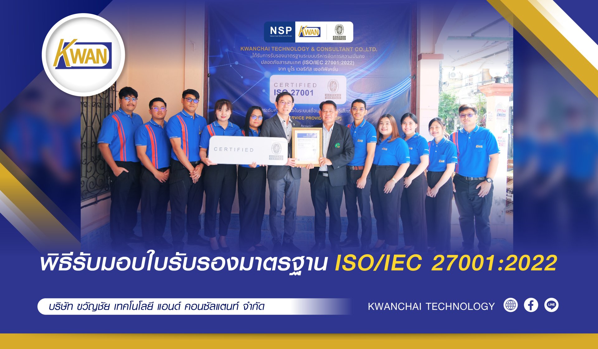 พิธีรับมอบใบรับรองมาตรฐาน ISO/IEC 27001:2022 บริษัท ขวัญชัย เทคโนโลยี