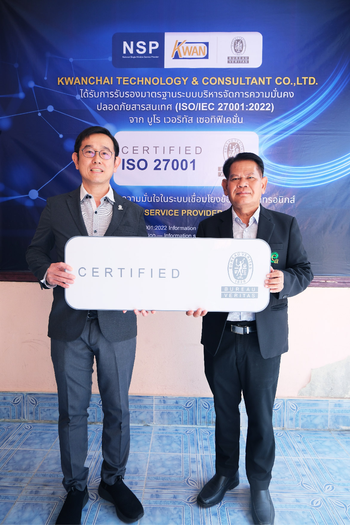 บริษัท ขวัญชัย เทคโนโลยี แอนด์ คอนซัลแตนท์ จำกัด ได้รับการรับรองมาตรฐานระบบบริหารจัดการความมั่นคงปลอดภัยสารสนเทศ ISO/IEC 27001:2022 จาก Bureau Veritas Certification สถาบันรับรองมาตรฐานระดับสากล
