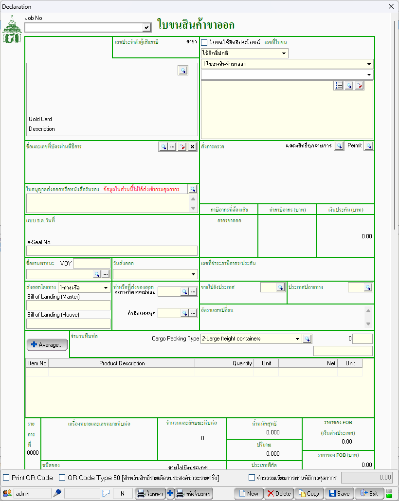 ใบขนสินค้าขาออก (Export Declaration) เป็นเอกสารที่ใช้ในการส่งออกสินค้าออกจากประเทศ โดยเป็นเอกสารที่ต้องยื่นต่อศุลกากร เพื่อแจ้งรายละเอียดของสินค้าที่จะส่งออก เช่น