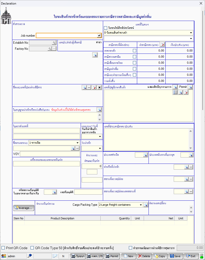 ใบขนสินค้าขาเข้า (Import Declaration) เป็นเอกสารสำคัญที่ใช้ในการนำเข้าสินค้าจากต่างประเทศเข้ามาในประเทศไทย โดยผู้ประกอบการหรือผู้นำเข้าสินค้าจะต้องยื่นเอกสารนี้ต่อ กรมศุลกากร เพื่อขออนุญาตนำเข้าสินค้า พร้อมทั้งชำระภาษีอากร (ถ้ามี) ก่อนที่จะสามารถนำสินค้าออกจากท่าเรือ สนามบิน หรือคลังสินค้าศุลกากรได้